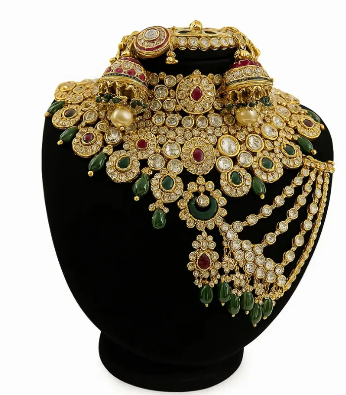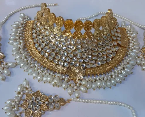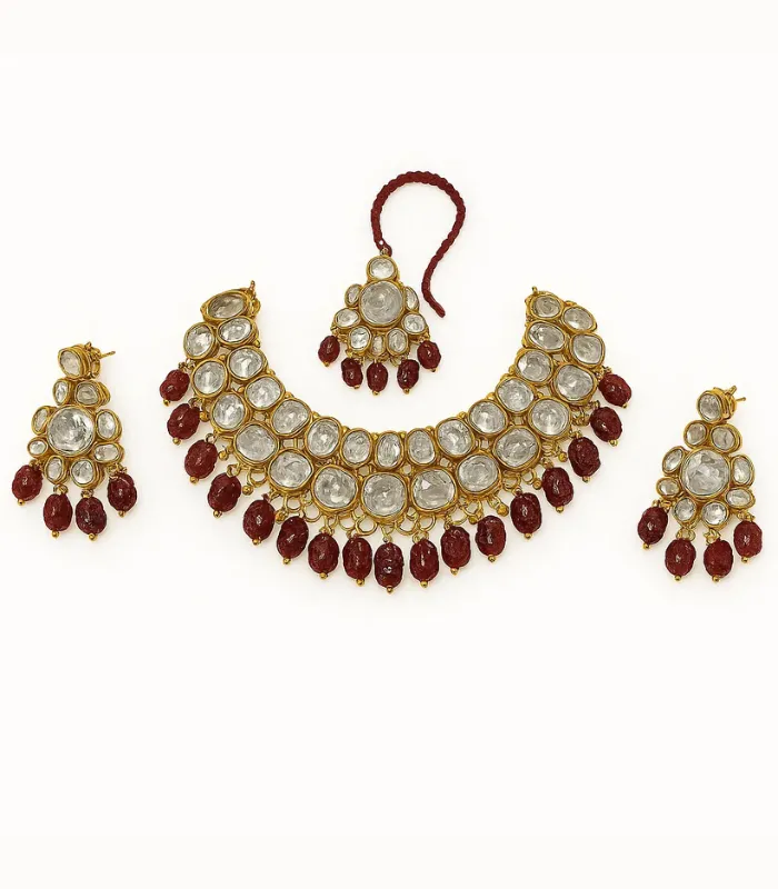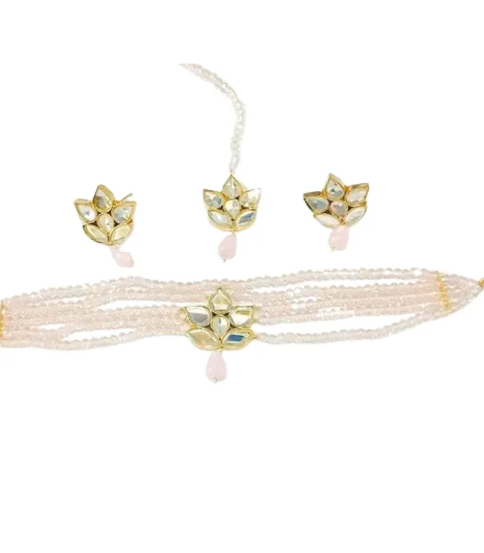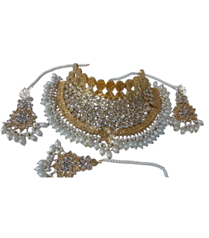 Bridal Kundan Choker Set with Necklace, Earrings & Maang Tikka