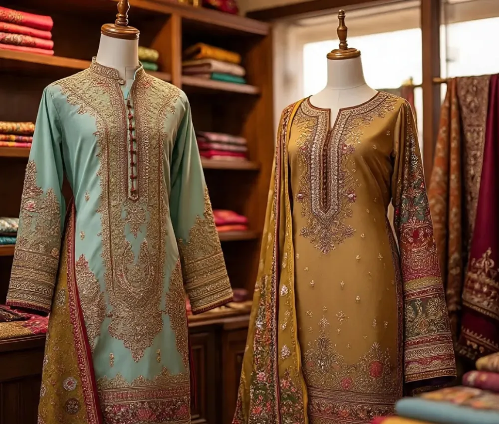 2-Piece Classic Dhaga Work Cotton Suit – Handcrafted Detail on Soft Cotton Fabric