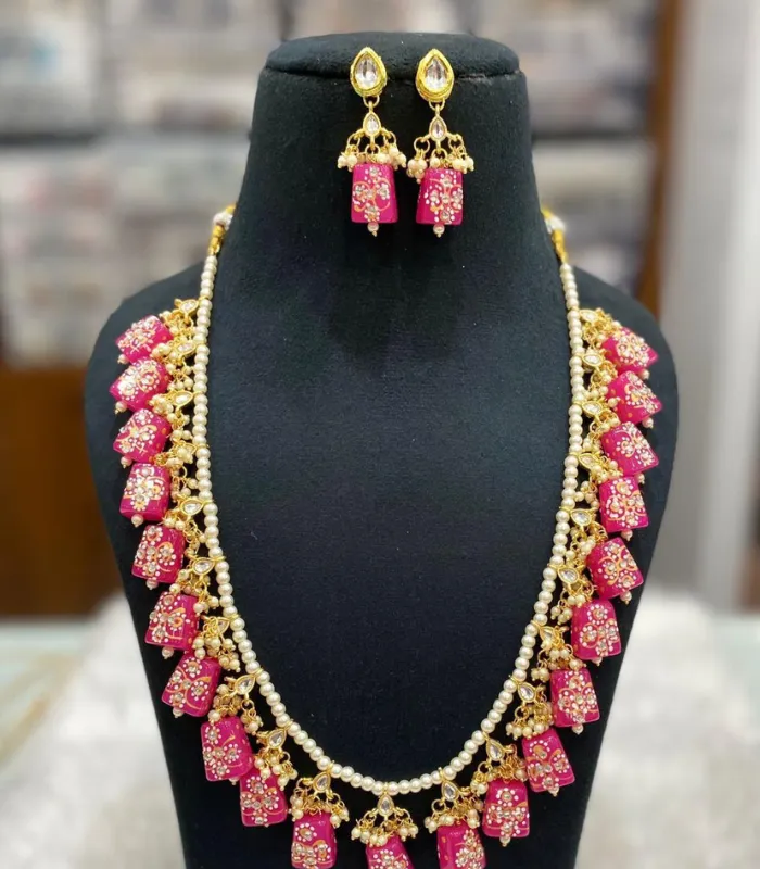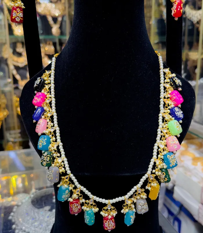 Handmade Meenakari Beaded Necklace with Earrings