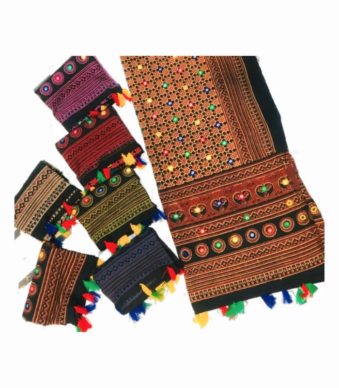 Elevate your traditional wardrobe with this stunning Ajrak chaddar, crafted from soft cotton and decorated with signature block prints and shimmering shesha (mirror) embroidery. Available in various rich hues, it’s the perfect accent piece for cultural gatherings or daily elegance.