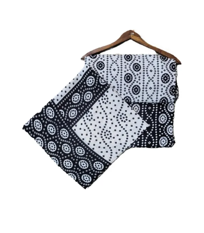 Traditional Black & White Ajrak Hand Block Printed 3-Piece Unstitched Cotton Suit – Fully Printed Shirt, Dupatta & Shalwar