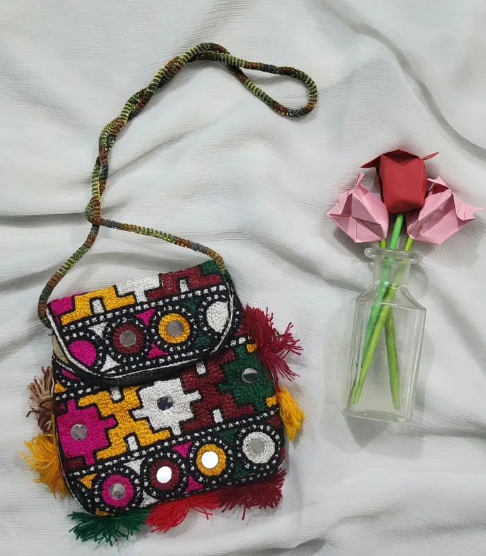 Women’s Ethnic Handbag with Embroidery and Mirror Work